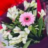 Букет с хризантемами и герберами оказался очень красивый! Цветы свежие ! Спасибо !